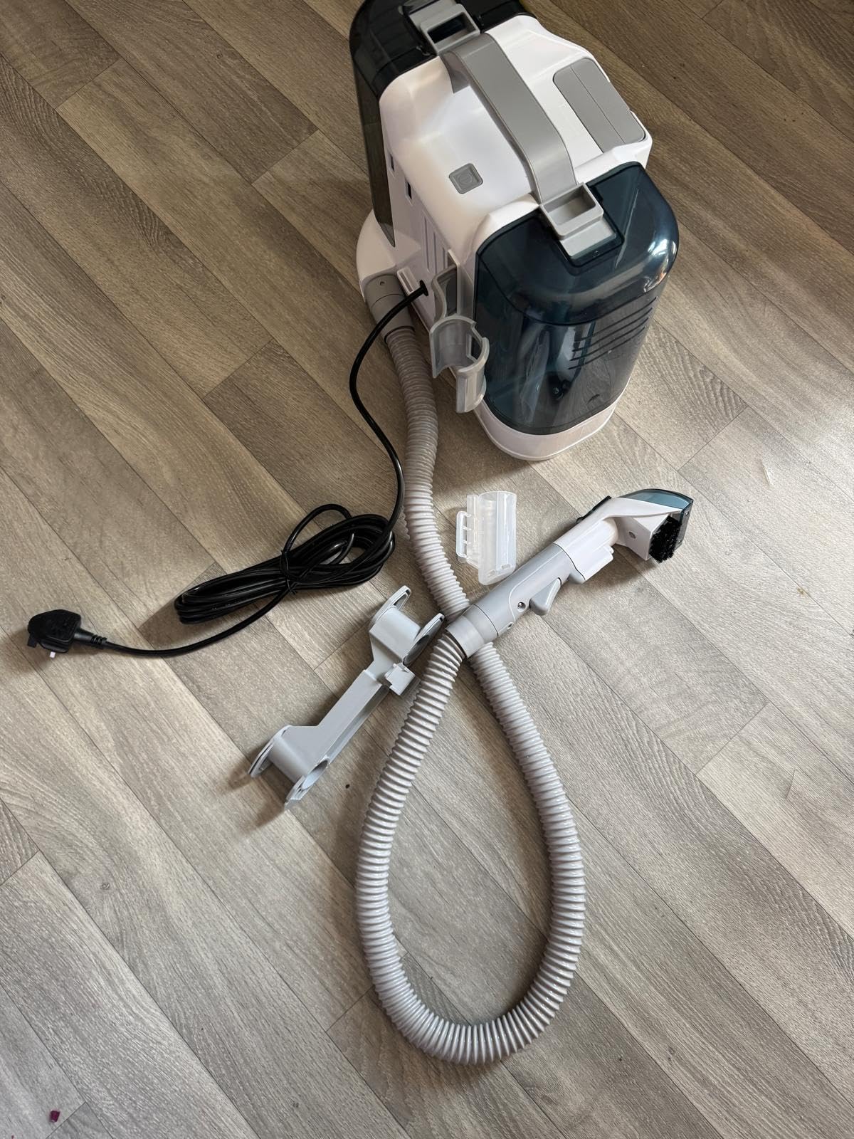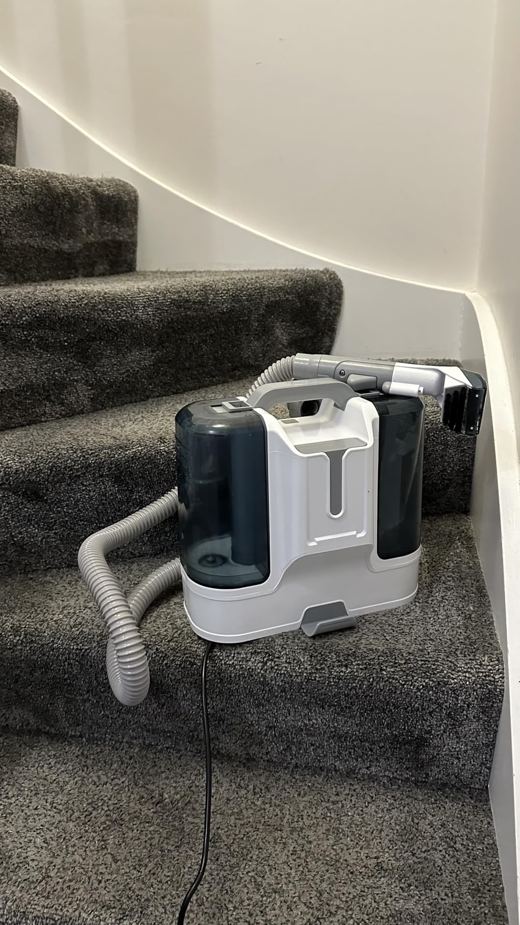 – 1.2m hose + 5m power cord = great reach for stairs and awkward corners